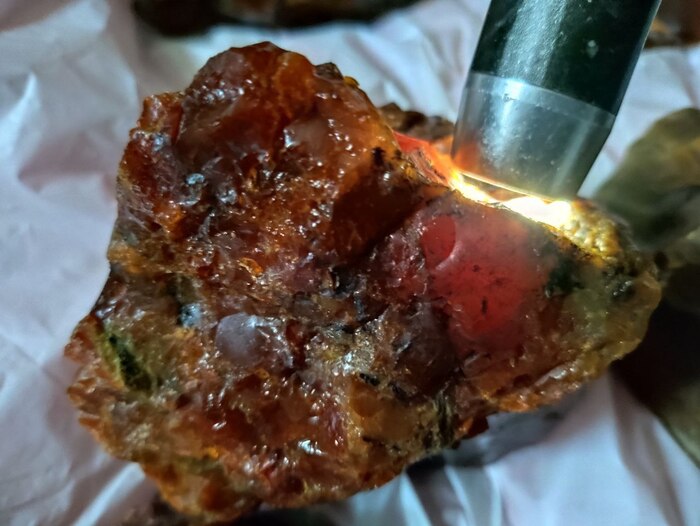 На правах первооткрывателя дал наименование этому минералу, " Родневит". Можно было назвать "Янтарит", но первое как то более звучит как мне кажется, а второе будет неправильно, искаженно восприниматься как янтарь, что будет вводить в заблуждение несведущих.