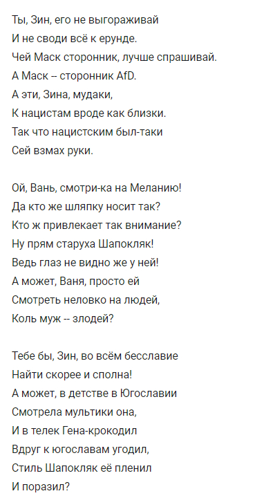 40 MalazDan Скриншоты комментов Ой, Вань... 10 месяцев назад #comment_338132826 Показать полностью 3 Комментарии Комментарии на Пикабу Скриншот Владимир Высоцкий Песня Юмор Политика Дональд Трамп Илон Маск Мелания Трамп Длиннопост Инаугурация 2 Ещё 0