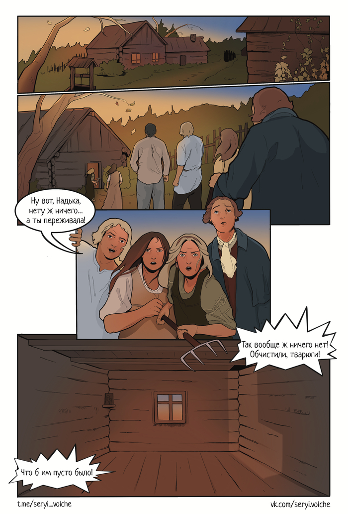 Мы поехали в Берды, бывшую столицу Пугачева, который сидел там — как мы сейчас видели — на престоле. Я взял с собою ружье, и с нами было еще человека два охотников. Пора была рабочая, казаков ни души не было дома; но мы отыскали старуху, которая знала, видела и помнила Пугача. Пушкин разговаривал с нею целое утро; ему указали, где стояла изба, обращенная в золотой дворец, где разбойник казнил несколько верных долгу своему сынов отечества; указали на гребни, где, по преданию, лежит огромный клад Пугача, зашитый в рубаху, засыпанный землей и покрытый трупом человеческим, чтобы отвесть всякое подозрение и обмануть кладоискателей, которые, дорывшись до трупа, должны подумать, что это — простая могила. Старуха спела также несколько песен, относившихся к тому же предмету, и Пушкин дал ей на прощанье червонец 4.