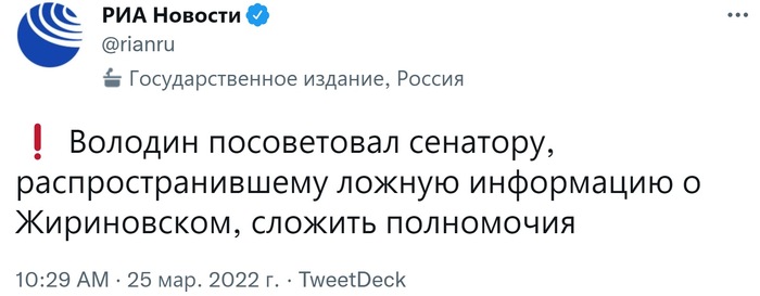 Обращаюсь к представителям СМИ, которые растиражировали недостоверную информацию о Жириновском: