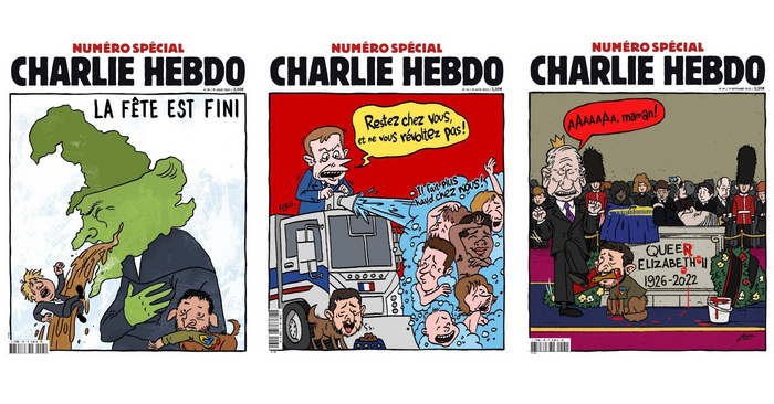 На сайте Charlie Hebdo недоступны номера с тремя карикатурами на Зеленского. Так, выпуск с обложкой про похороны королевы Елизаветы II, как утверждается, был опубликован 19 сентября — номера журнала вышли 14 и 21 сентября (на обложке первого из них был изображён король Карл III с подписью «Убийца Леди Ди на троне»). На выпуске с обложкой про Макрона указана дата 29 августа — номера журнала вышли 24 и 31 августа (более ранний номер при этом действительно украшает карикатура на французского президента, но другая). Судя по обложке выпуска с Джонсоном, он появился в продаже 9 июля — в действительности журнал выходил 6 и 13 июля, ни один из них не был посвящён экс-премьеру в частности или Великобритании в целом.