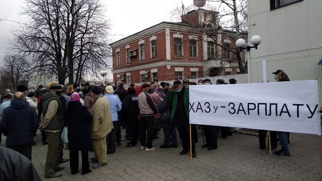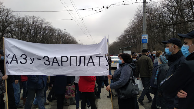 15 апреля, сотрудники авиапредприятия провели пикет под стенами завода и перекрыли движение в двух местах – на перекрестке улиц Сумской и Деревянко, а так же Белгородском шоссе. Работники ХАЗа "доведены до критической точки хроническими задолженностями по зарплатам".