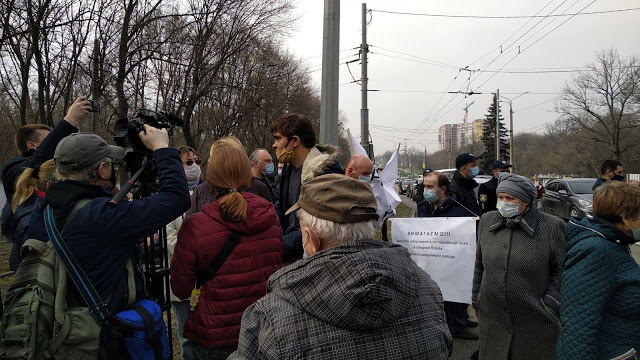 Поддержать протестующих приехал только руководитель депутатской фракции ОПЗЖ в Харьковском горсовете Андрей Лесик вместе с журналистами и своими соратниками.