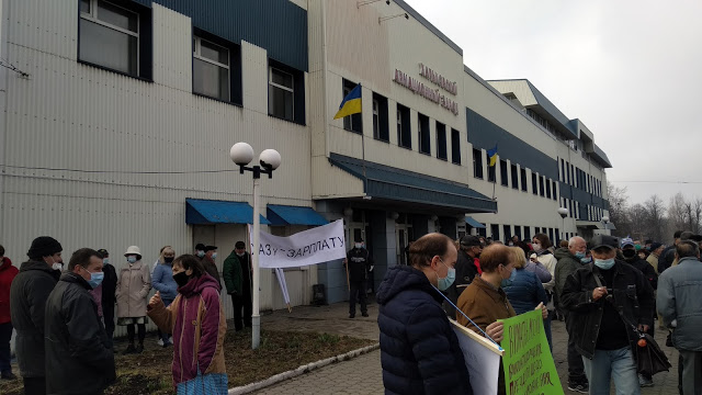 Около 300-т отчаявшихся заводчан с плакатами "ХАЗу - зарплату", "ХАЗу - работу", "Требуем выплатить задолженность по зарплате и списание долгов авиационного завода" требовали погасить зарплатные долги, которые уже достигли 253 миллионов гривен. Кроме того, рабочие требовали загрузить авиазавод государственными заказами.