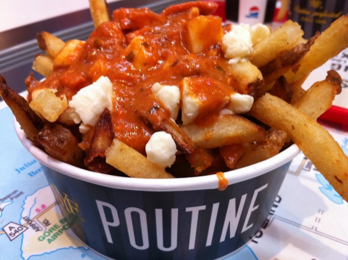 Путин - довольно распространённое блюдо в Канаде (Poutine - ударение на последний слог). Судя по всему до нас не дошло, потому как было перехвачено беларусами. По сути картофель фри. Поливается по канадской традиции каким-нибудь сладким соусом (да, кленовый) и сверху подтаявший сыр.