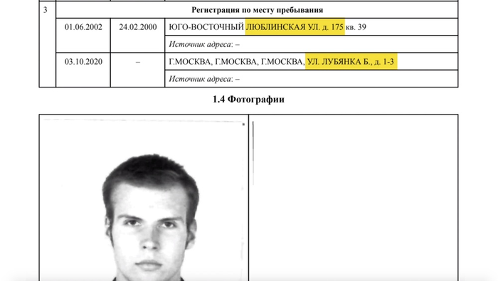 А записывают его — тадам! — «ФСБ Владимир Александрович Паняев». Пробиваем Паняева по старым базам, доступным в интернете, и устанавливаем некоторые куски его биографии: работал фельдшером в воинской части. Сейчас прописан по адресу Лубянка, 1. Какой интересный адрес. Смотрим предыдущую прописку и тут уже вообще не можем поверить своим глазам. Улица Люблинская, дом 175.Знаете, кто еще прописан в этом доме? Я.