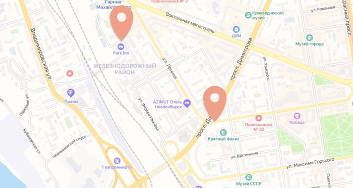 14 августа. Перед поездкой в Новосибирск отравители из ФСБ выключили свои настоящие телефоны и пользовались временными. По протоколу, они видимо должны были вообще оставить настоящие телефоны дома, чтобы их было невозможно отследить, но не оставили. Доктор-убийца Александров включил свой настоящий телефон в Новосибирске лишь однажды. И этого достаточно, чтобы определить, где он был. В 15-30 местного времени его телефон был здесь, а здесь расположена гостиница Парк Инн, где спустя пару часов окажусь я.