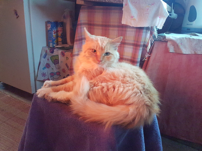 Первые дни он жрал как не в себя и спал, а потом осмотрелся и захотел на улицу. Кастрат, на шее протертость от ошейника, очень с характером - прям Мужиг с большой буквы. Детей и других животных терпит снисходительно. Племянник таскает его. В общем, не может быть, чтоб кто-то такого другана потерял и не искал. Разместили обьявы, но реакции ноль, не ищут. Там в Вязниках заправка и лес, вся жизнь с другой стороны трассы, и то далеко, а трассу не перейти - раскатают, да и отбойник там глухой, то есть откуда-то Белый приехал.