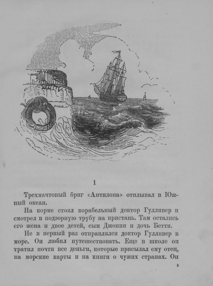 Как известно, самый издаваемый в России перевод "Путешествий Гулливера" начинается поэтичной фразой: «Трехмачтовый бриг «Антилопа» уходил в Южный океан…».