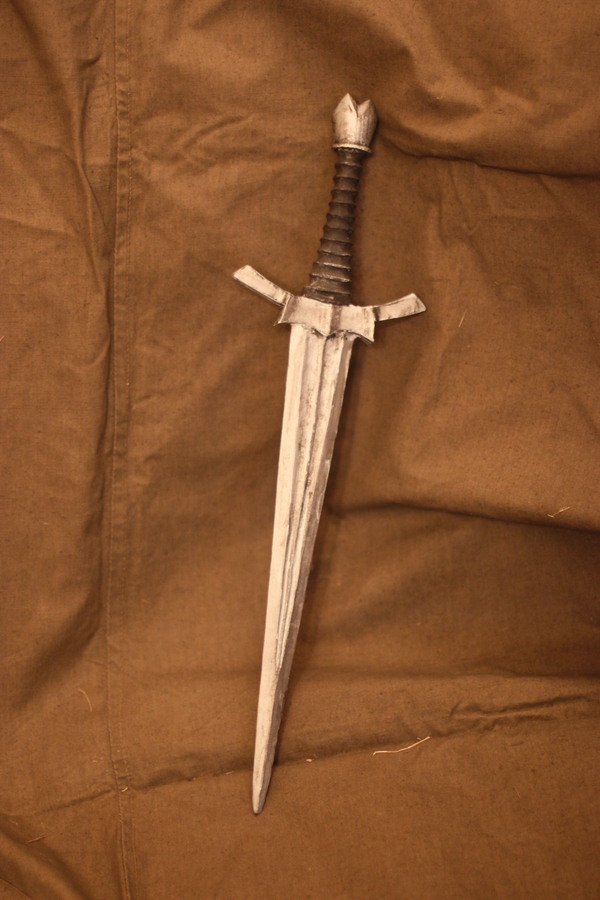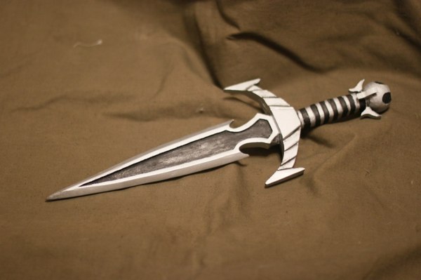 Сделан полностью из МДФ панелей. Загрунтован и окрашен тем же акрилом. Что ятаган, что клинок, работы очень простые. поэтому с них я и начал набирать опыт, может быть потом я их переделаю с нуля, когда будет гораздо больше опыта и я не сделаю тех же ошибок, что раньше.