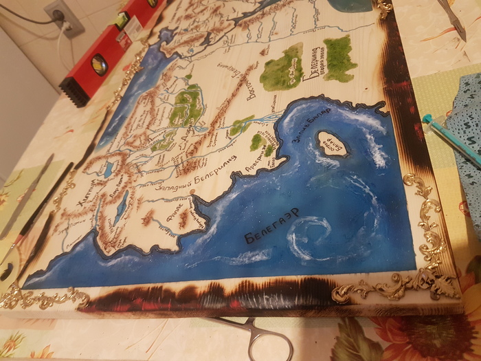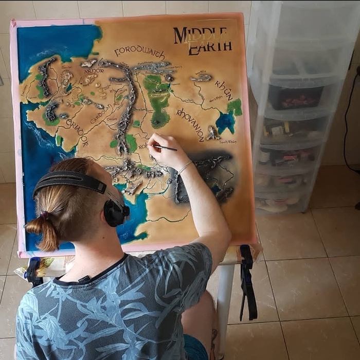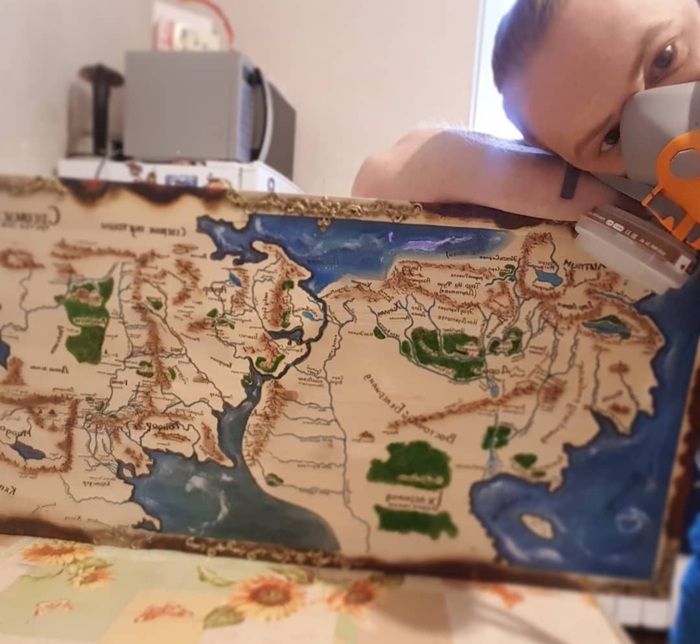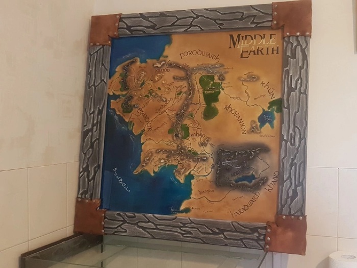 Немного позанимавшись скульптурой, и открыв для себя в одном из проектов эпоксидную смолу я решил создать карту с морем из эпоксидки. Друг предложил мне сделать карту из Властелина колец (котороя и по сей день висит в одной из пекарен в Нижнем Новгороде)