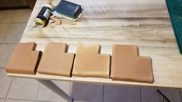 Мне неочень нравились стыки рамы и они были закрыты кусками натуральной кожи. Закрепил кожу клепками и искуственно состарил горелкой.