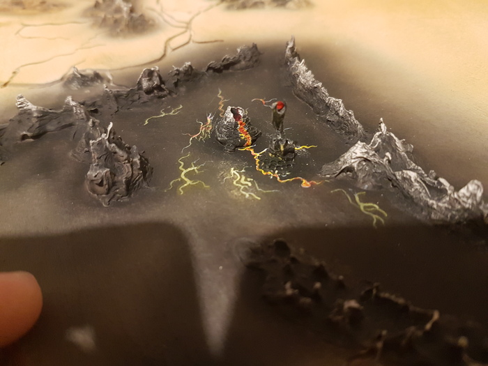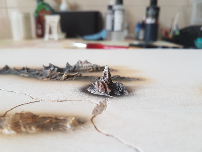 Пришла очередь создания гор. Поэкспериментировав с шпаклевкой, появилась тактика их создания. Наносил небольшие мазки, после их высыхания они опиливались борами и красились.