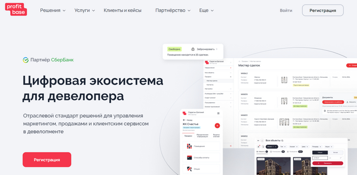 Профессиональная программа для девелоперов, которые хотят управлять продажами, маркетингом и клиентским сервисом в одном окне. Система Profitbase включает в себя широкий перечень узкоспециализированных инструментов: модуль для заключения договоров с банками, личные кабинеты для сотрудников с разграничением прав доступа, интерактивные каталоги строящихся и готовых проектов, опции для предварительного бронирования покупки недвижимости. С помощью дополнительных интеграций можно автоматизировать большую часть рутинных процессов — например, коммуникацию с потенциальными покупателями или продажу объектов через сторонние агентства риелторов.