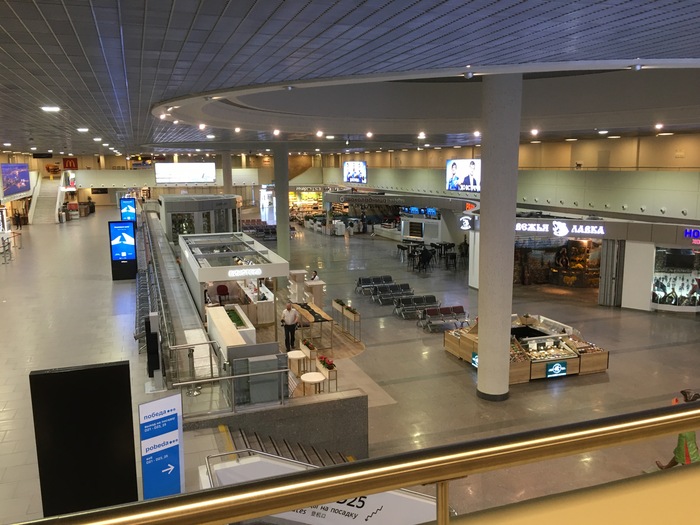 Все, что можно закрыть, закрыто, все что можно отменить, отменено. Работает всего пара стоек регистрации на весь аэропорт. Регистрируюсь, спрашиваю, не отменят ли рейс? Неизвестно, следите за объявлениями