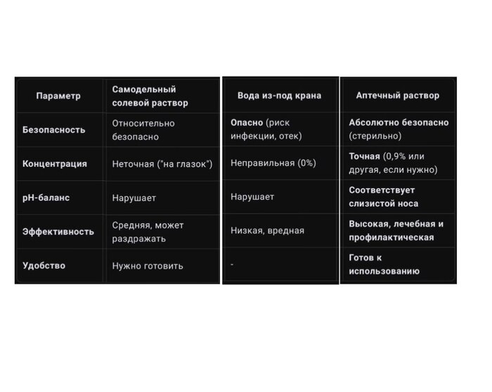 В самодельном растворе нет стабилизаторов pH. Слизистая носа имеет слабо-кислую среду. Обычная вода и простой солевой раствор могут нарушить этот баланс, что вызывает раздражение.