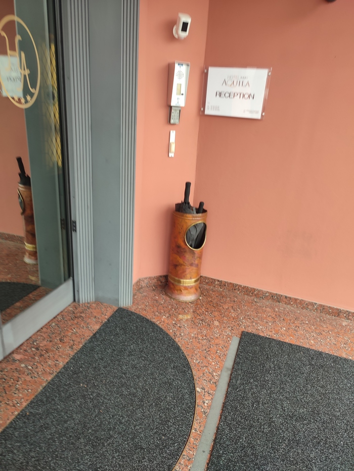 Зонты в главном входе нужно оставлять в специальном ведре. А если их спиздят?