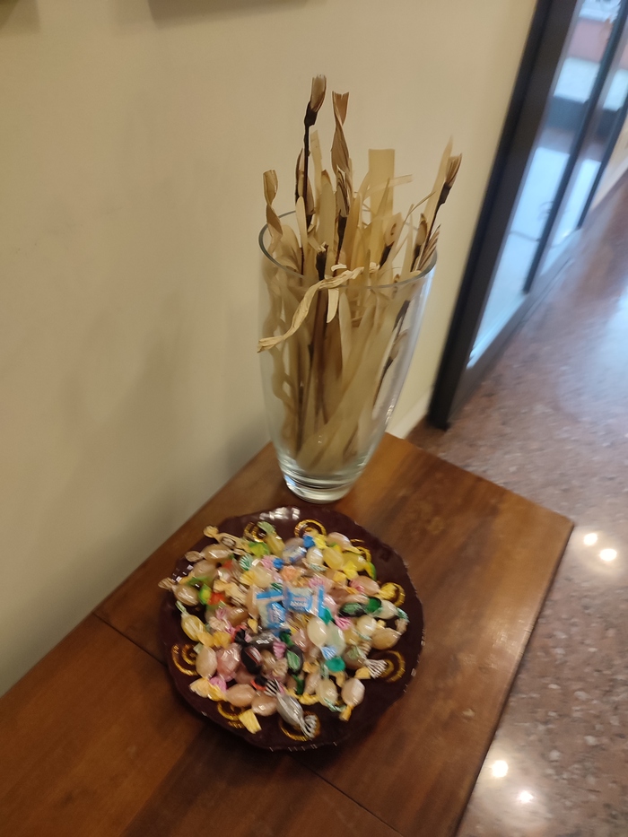 На входе конфеты. Попробовал одну. Гадость грейпфрутовый леденец. Что может быть хуже?