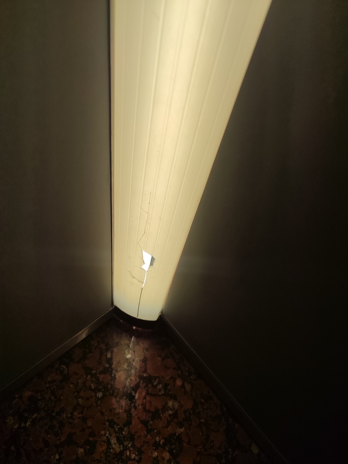 В лифте очень хрупкие лампы. Буквально один удар и сразу трещина.