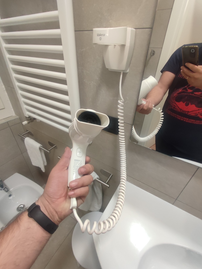 Фен кошмарный. Нельзя просто включить. Чтобы он работал нужно постоянно давить на кнопку.