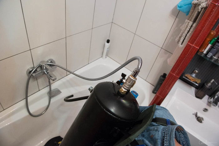 Разумеется, безопасность была превыше всего: собирали на совесть, посадили все соединения на анаэробный клей, был предусмотрен клапан аварийного сброса, рассчитанный на 9 бар, распылитель бил мягко, все баллоны были новыми и сертифицированными, все детали были рассчитаны с многократным запасом прочности.