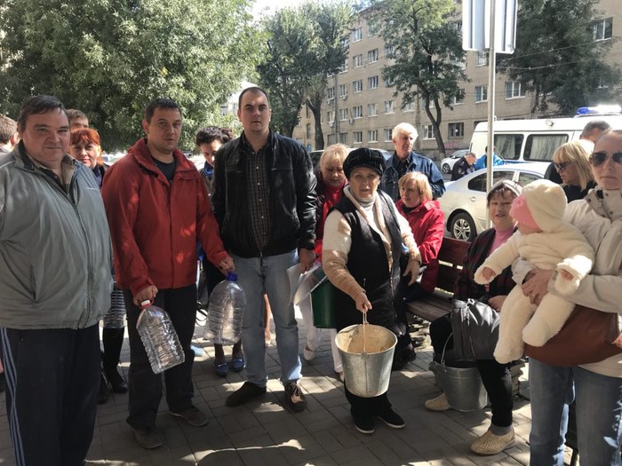 Воду людям подвозят на двух машинах. Приходится стоять в очереди, потом кипятить ее.