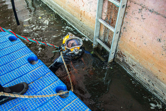 Сотрудники Мосводоканала следят за подводным трубопроводом (который составляет 61км). Водолазы обслуживают насосные станции, очистные сооружения, станции водоподготовки, рыбозащитные сооружения, подводные коммуникации. Работа в основном плановая: обследуют объекты, очищают трубы от наросших моллюсков. Но погружаться приходится глубоко. Зубцовский гидроузел, к слову, достигает почти 30 метров.