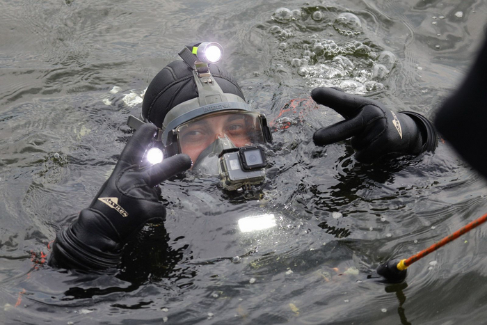 Водолазы никогда не работают в одиночку. В отряде, как минимум, три участника: тот, кто погружается, тот, кто страхует и при необходимости придет на выручку, а еще руководитель спуска. Последний направляет работающего на глубине.