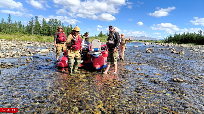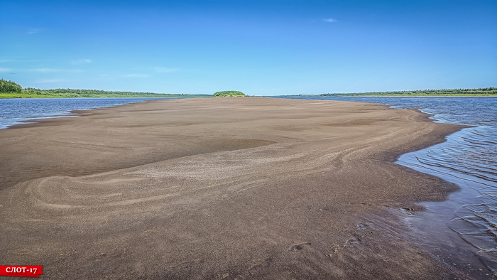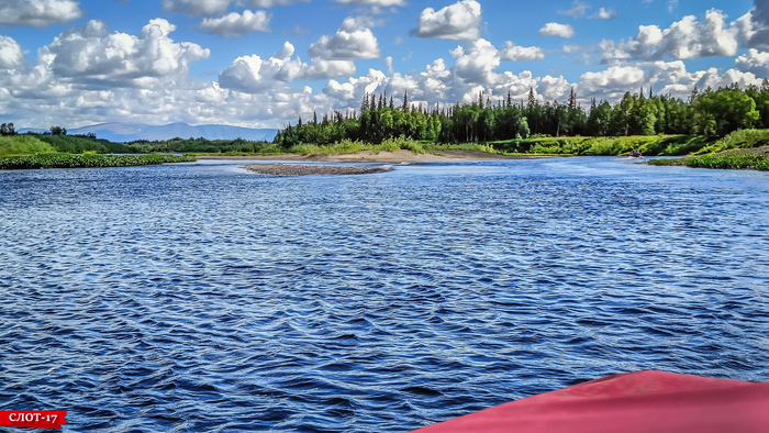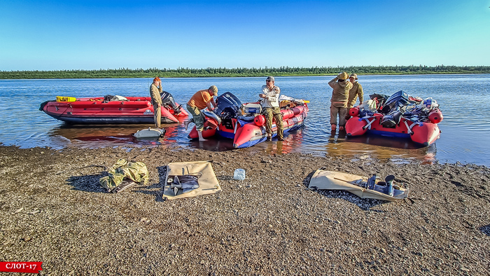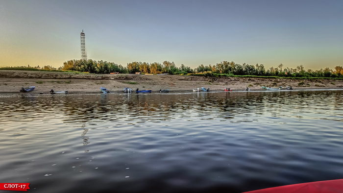 Ремонт занял час времени. Погода шикарная. 3 часа мы бодро идем на восток. Первый идущий экипаж внезапно сбавляет ход. Смотрит за борт. Глубины на середине реки почти нет. Спешиваемся в воду. Тянем лодки к берегу. Снимаем мотор, осматриваем.