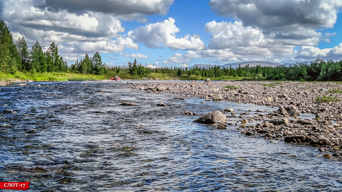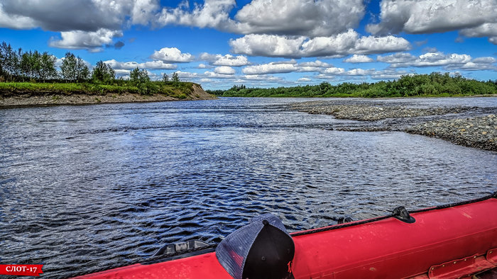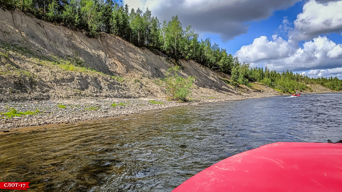 Перекаты и пороги стали встречаться все чаще, каждые 50-100 метров мы стабильно садимся на камни брюхом лодок. В одном из таких перекатов, пытаясь удержать равновесие на бурном течении и на скользких камнях, я шмякнулся в воду. Под задорный хохот коллектива, я печальным взглядом провожал уплывающие в даль недавно купленные «кроксы». Ощутив голыми ногами остроту камней, я поспешил выбраться на берег и одеть забродный костюм.