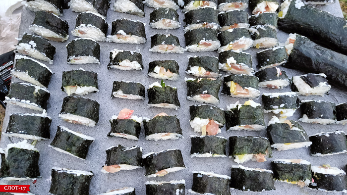 Это был «праздник желудка». Таких роллов мы не ели давно. Свежее филе хариуса по вкусу как семга в знаменитых роллах «Филадельфия».