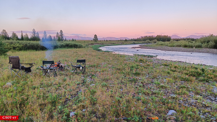 5 день подходит к концу. Мы ищем место для стоянки. Ставим палатки. Наслаждаемся пойманным хариусом горячего копчения.