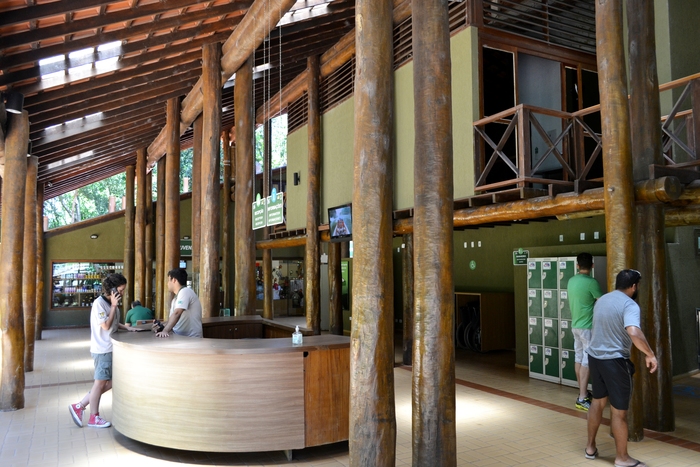 Я был свидетелем того, как паренёк по доброте душевной решил поделиться своим сэндвичем с носухой, которых тут называют "Коати". Знаете, чем все кончилось? Прибежало ещё две! Первая забралась на стол по спинке стула и начала отбирать всю еду, что там была. Парень в ужасе ретировался за железную решетку. Да, в этот момент стало ясно, для чего нужен огромный вольер - для людей, чтобы они могли спокойно поесть.