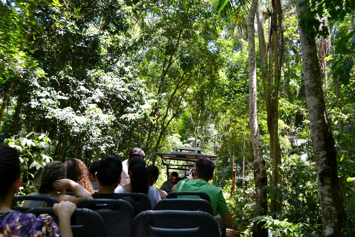 В головной части расположился гид-экскурсовод, рассказывавший о сельве, по которой мы проезжаем (реликтовый лес, где никогда не велась хозяйственная деятельность, сохранившийся с давних времен в первозданном виде).