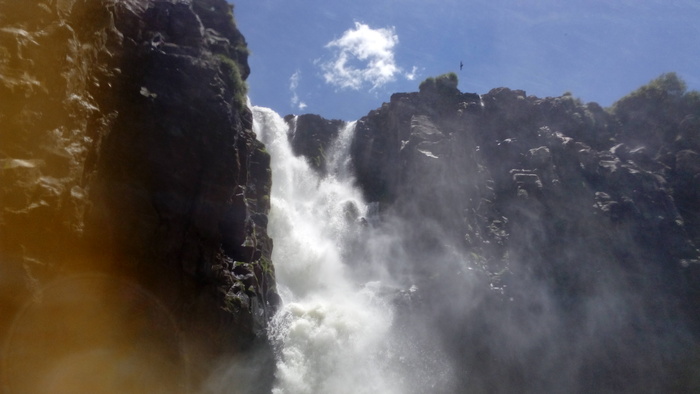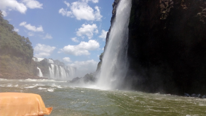 При приближении начинает окружать нереальный шум и все сразу становятся мокрыми, не спасают даже дождевики, которые некоторые надели (в данном случае они абсолютно бесполезны), плюс - сильная качка