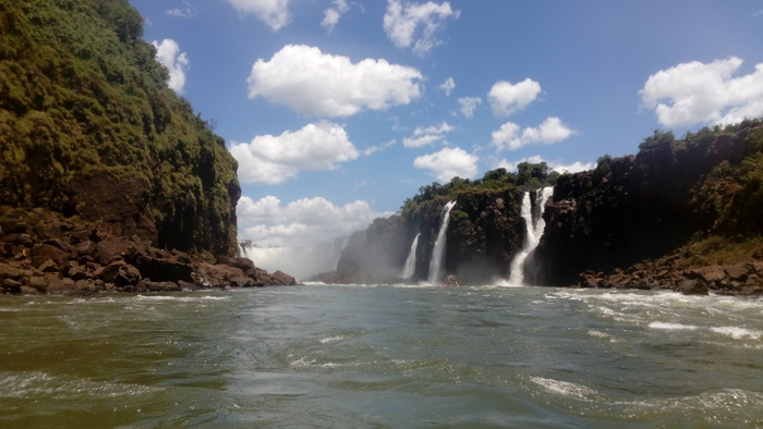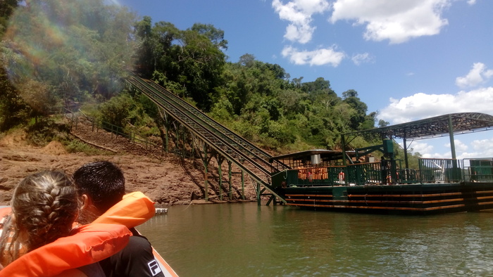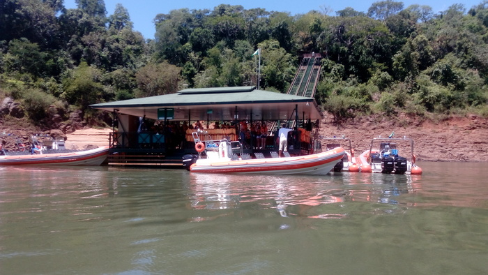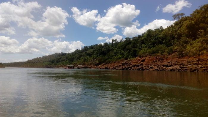 Маршрут начинается, как я уже упоминал, в нижнем течении реки, то есть после водопадов, лодка идет против течения в направлении каскада водопадов Игуасу