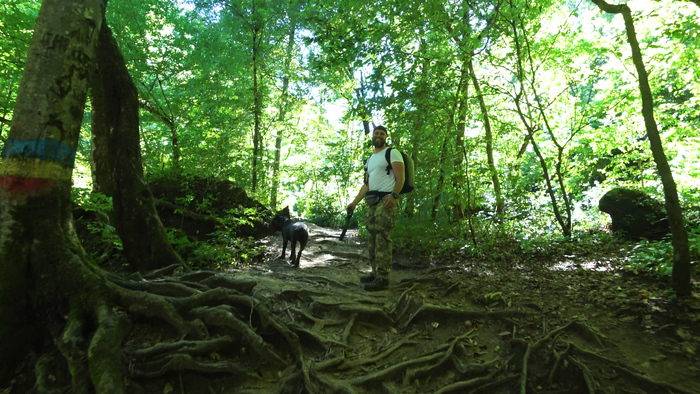 Вот мы удивились, когда узнали, что бесплатный путь подразумевает некоторые сложности по преодолению с песиком. А еще мы потом сильно тормозили на основной туристической тропе, где-то из-за туристов, где-то из за рельефа.
