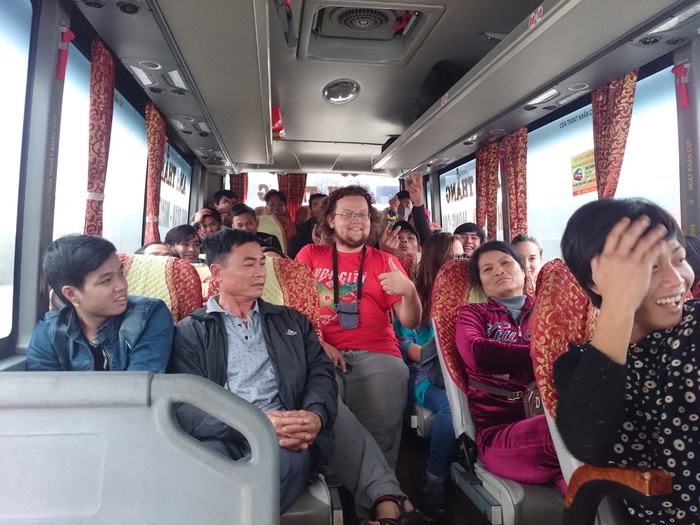 Ехали мы медленно, было много остановок, в багажном отделении кто-то копошился, мы переживали, что рюкзаки еще утащят. В этом автобусе помимо нас ехали две девушки, кажется, из Голландии, они, как оказалось, купили билет в турагентстве за 140.000 VND. То-есть вы понимаете, дорогие читатели, нас нагрели прямо в кассе на автобусной станции, а потом и в автобусе. Если агентство взяло за билет 140.000, а с нас взяли на городской станции 150.000.