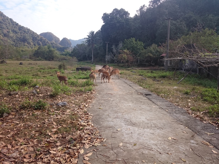 В завершении сегодняшней большой поездки мы решили заехать в Cat Ba National Park, а заодно и взобраться на гору Ngu Lam. По дороге к началу подъема есть несколько клеток с обезьянами, территория с другими животными. Есть еще какой-то искусственный водоем, а неподалеку недостроенные бунгало. Вероятно, здесь тоже задумывался резорт, но что-то пошло не так.