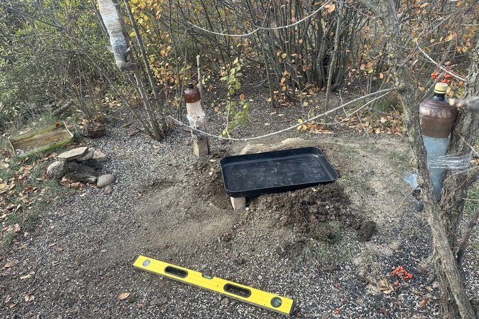 ⚠️ Однако главная проблема — не сделать водопой, а регулярно наполнять его. Казалось бы, ёмкость небольшая, но воды требовалось много. Мы брали с собой шестилитровую баклажку, а вместе с рюкзаком с кормом, фотоаппаратурой и штативами это было нелегко. Подвозить воду машиной, к сожалению, возможности нет.