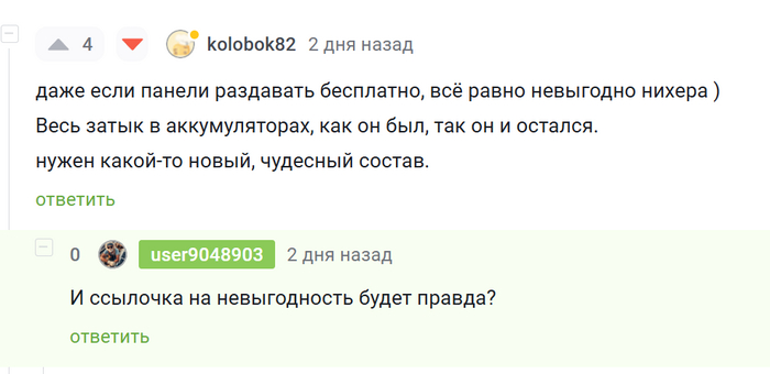Как и в случае с солнечными панелями, резкий скачек мировых цен в период энергокризиса 2022 года на ископаемый газ и уголь привели к резкому росту спроса на СП, что в свою очередь привело к рекордному масштабированию производства СП в Китае и соответственно к обвалу цен, достигших $0,085-0,088/Вт или 3 400 рублей за 500 ваттную панель, высокие цены на ископаемый газ дали старт и новой промышленной индустрии - зеленой химии.