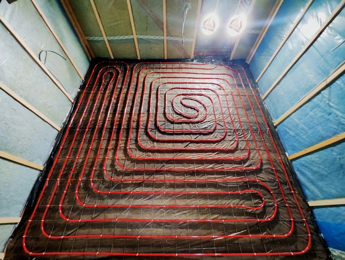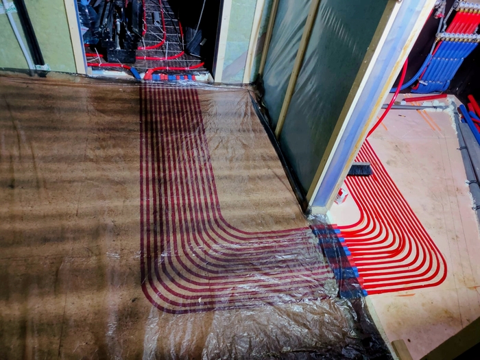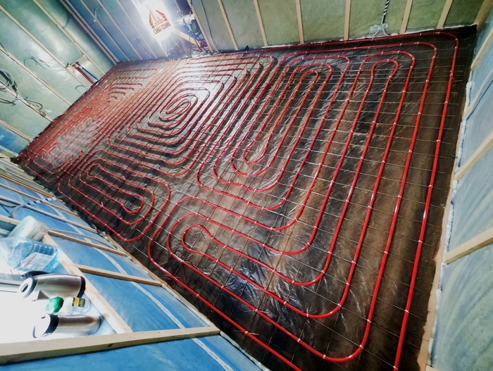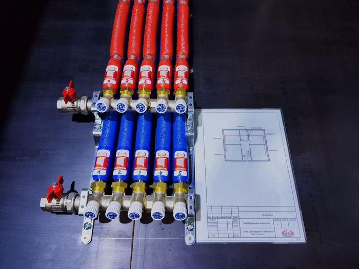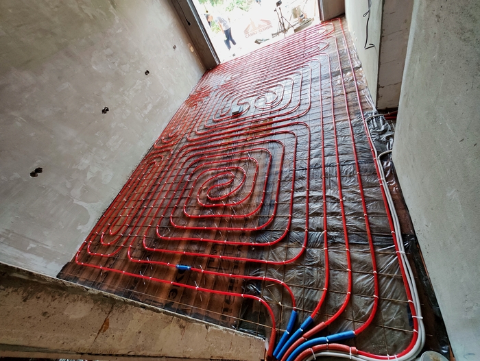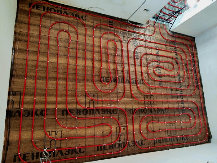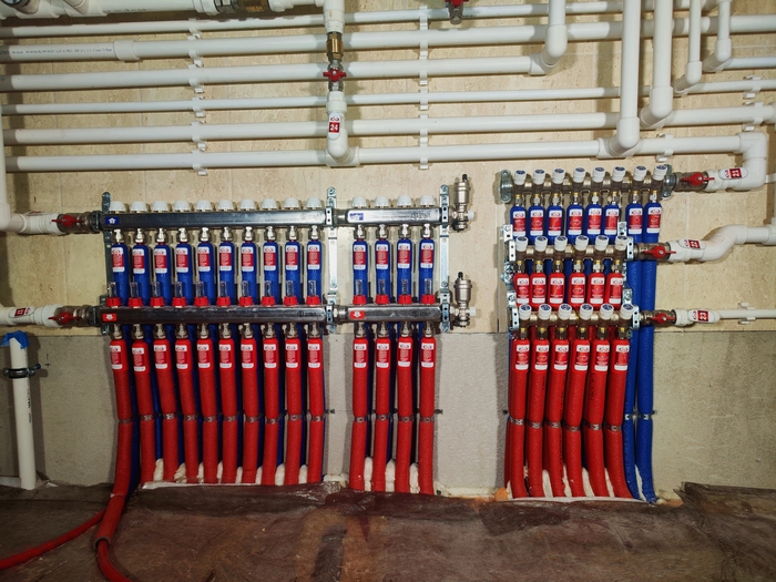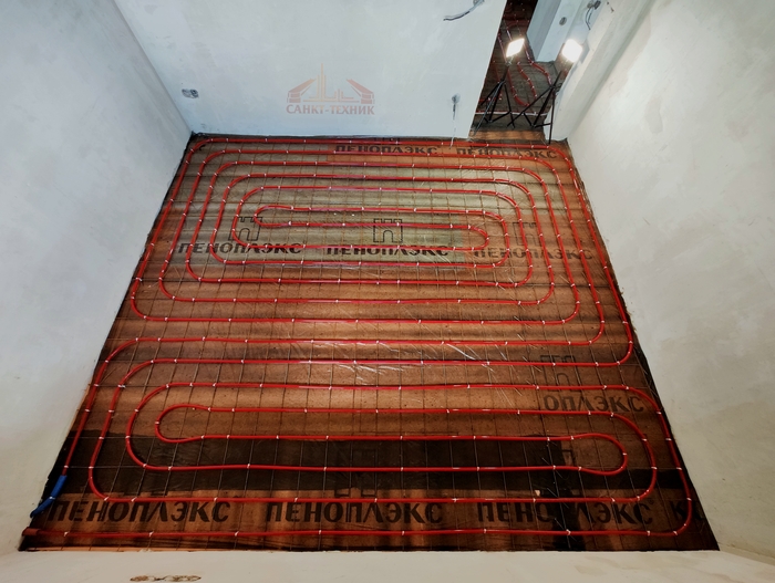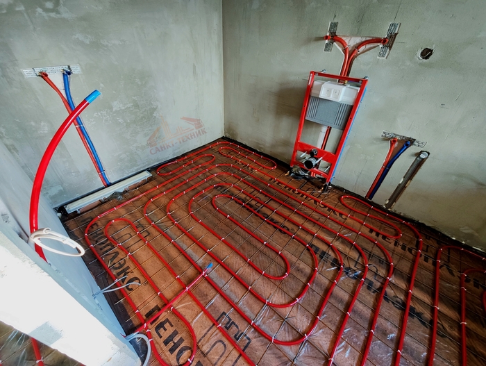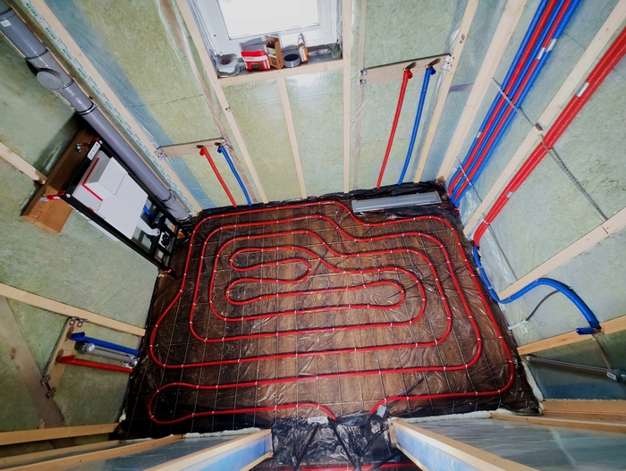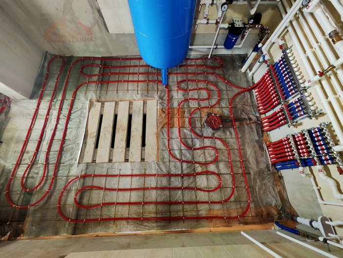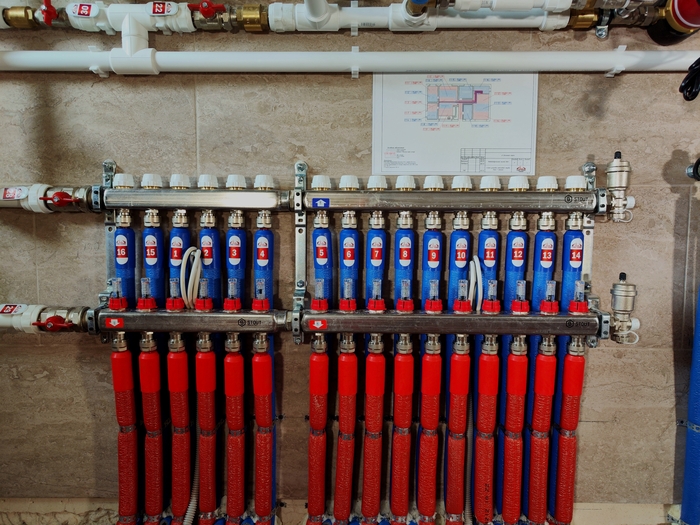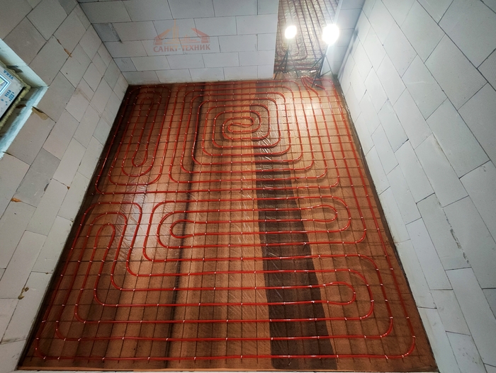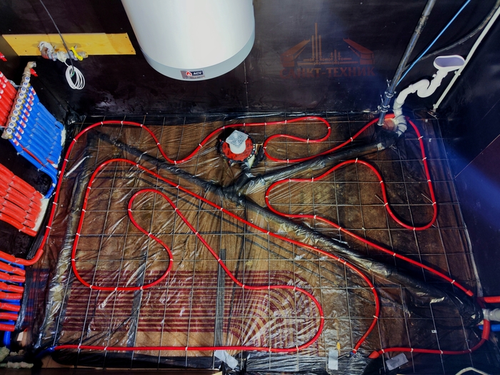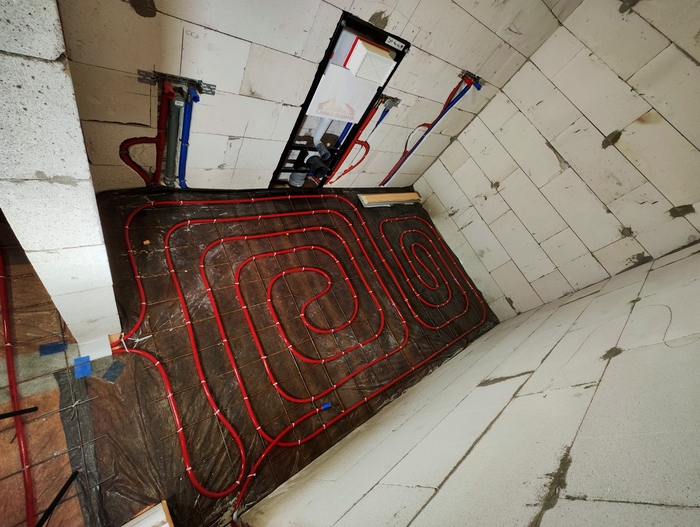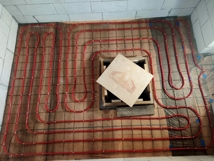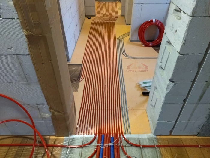 Выполнен монтаж теплых полов и водоснабжения с канализацией в доме площадью 200кв.м. Котельная будет во второй части.