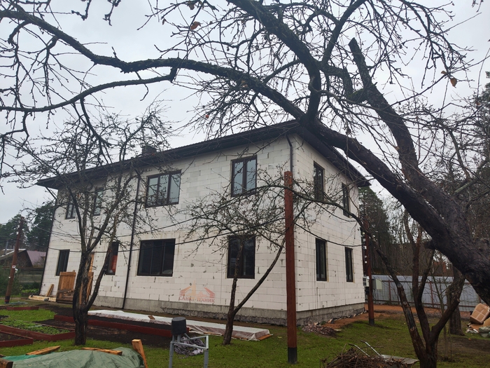 Имеем дом в виде коробки с отделанным фасадом под чистовую. Электрика смонтирована, настал черёд отопления и водоснабжения с канализацией. Выбор заказчика пал на нас ещё около полутора лет назад, когда мы с ним встречались здесь первый раз, чтобы доработать предварительное коммерческое предложение до окончательного.