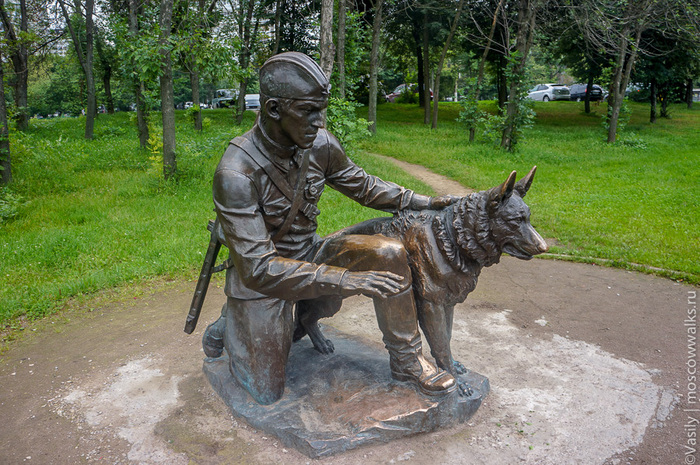 Собака – верный помощник человека, в том числе и на войне. В 2009 году при реконструкции Терлецкого парка была установлена скульптура солдата Великой Отечественной войны с собакой. С 1924 года и до 1970-х годов в этих местах находилась знаменитая Центральная военно-техническая школа дрессировщиков Красной Армии (после войны — Центральный питомник «Красная Звезда»), где готовили собак в воинской службе.