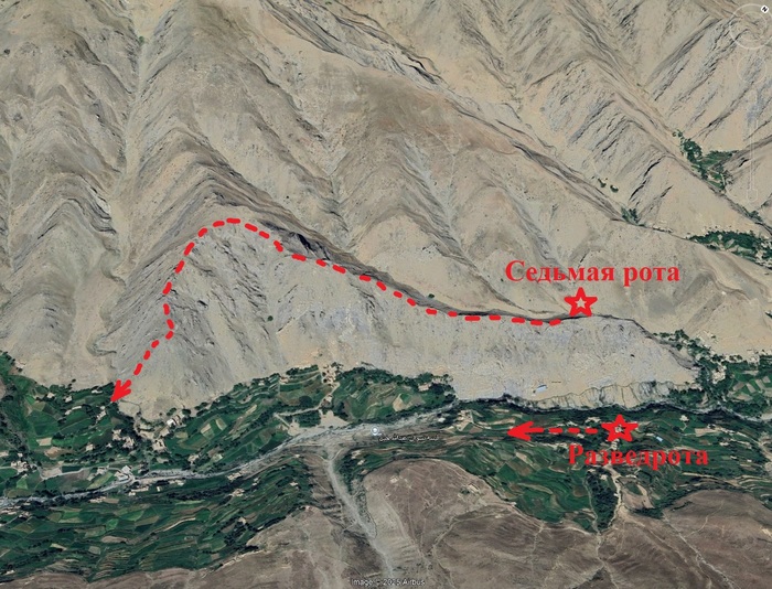 На Черной Горе Рогачев переговорил по радиостанции с Комбатом капитаном Есипенко, поднял Седьмую роту, поставил задачу двигаться по хребту над Абдуллахейлем, прикрывать сверху разведчиков. В конце хребта мы должны закрепиться, дождаться, пока разведка вылезет из Абдуллахейля к нам наверх, затем всем дружной компанией планировалось уйти в горы на ночевку.
