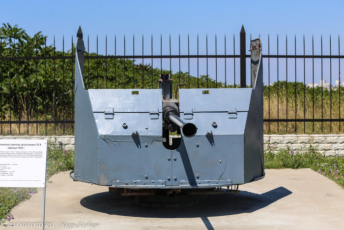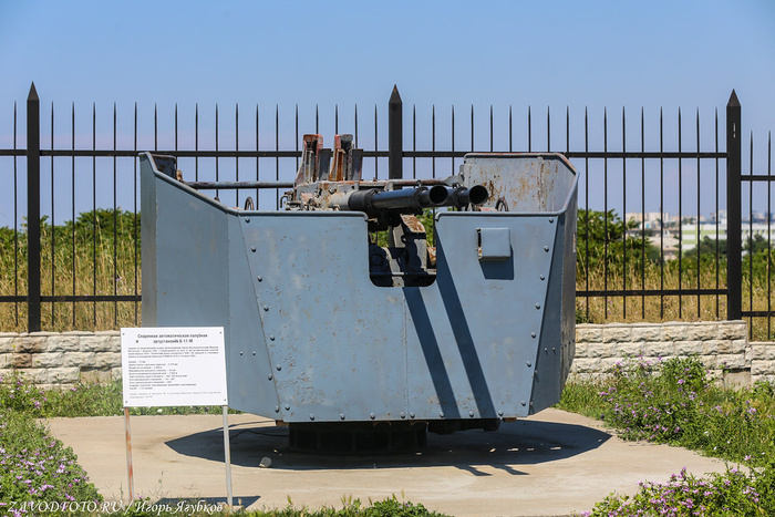 37-мм автоматическая зенитная пушка 70-К. Корабельный вариант сухопутной установки 61-К. Основная автоматическая зенитка советского ВМФ в годы ВОВ, заменила собой 45-мм полуавтомат 21-К. Масса снаряда - 0,73 кг; дальность стрельбы 4000 м. по самоликвидатору, 8500 - баллистическая; скорострельность - 150 (по др.данным до 180) выстр/мин, расчет 5-6 чел.