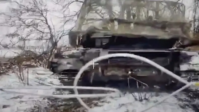 Показаны новые кадры поражения танка Leopard 2A6 и двух Т-64БВ ВСУ ударами дронов на оптоволокне