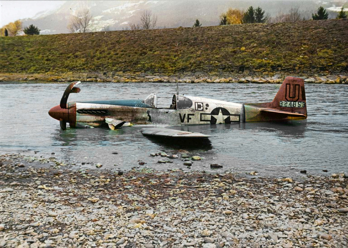 Сбитый американский истребитель P-51 Mustang, вторгшийся в воздушное пространство Швейцарии и атаковавший самолёты местных ВВС, 1944 год.