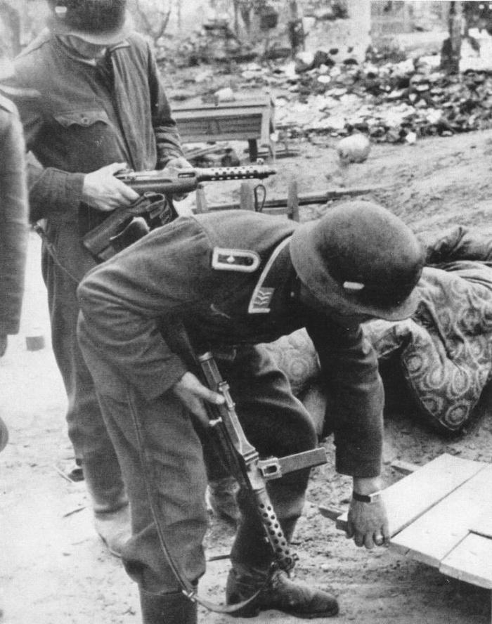 МГ-34 сменил хозяев. В конце войны только совсем ленивый командир не обзаводился сверхштатным неучтенным оружием, как правило - трофейным. Причем не только пехотный, точно так же поступали артиллеристы, все самоходки имели доп. пулеметик с запасом патронов, и тыловики - в частности медики даже пушки при медсанбатах имели.