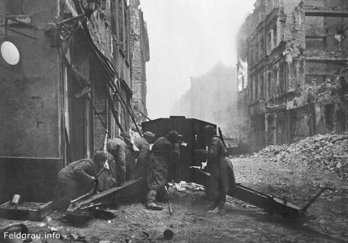 Создать плотность артиллерии до 200 стволов на километр фронта невозможно на узких городских улицах, потому оптимально было сочетание пары танков, штурмовой группы и приданной артиллерии, причем предпочтение отдавалось калибрам покрупнее (до того, что взводу пехоты в штурмовой группе придавалась пара гаубиц 203-мм образца 1931 года (Б-4)
